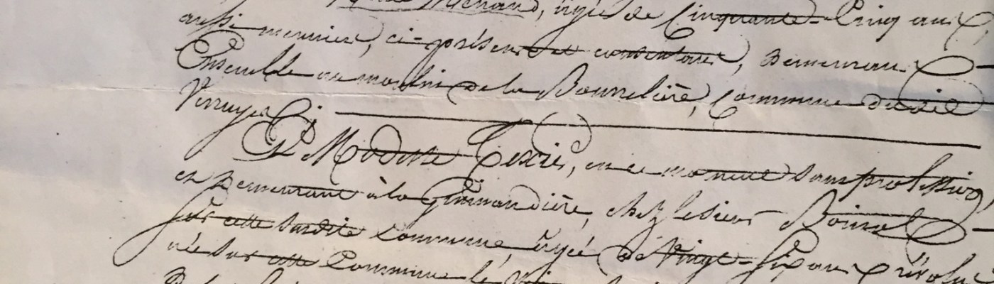 Au fil des étés passés dans la salle des Archives de la commune, les premières découvertes ne tardent pas. Une de mes ancêtres préférées, peut être parce que c’est la première pour laquelle je pouvais dépasser le cadre née-mariée-décédée, et à laquelle je pouvais donner une personnalité imaginaire à partir des documents trouvés, est Modeste Texier.
