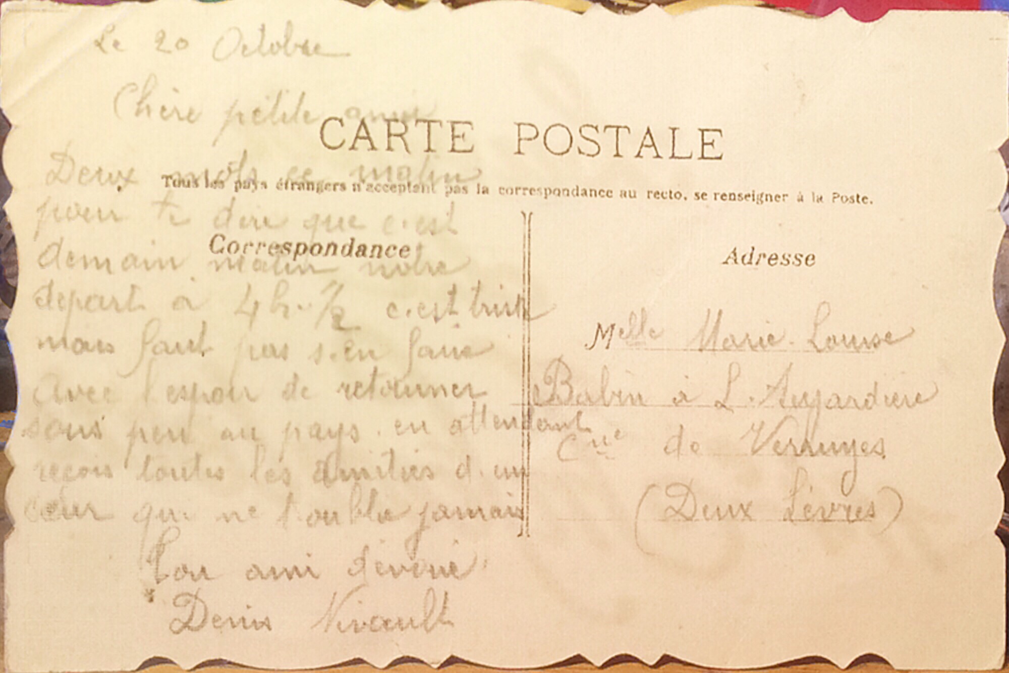 Les adieux au pays ont eu lieu. Denis a certainement pu voir Marie-Louise et des promesses l’un envers l’autre ont du être faites. Si la guerre le permet.