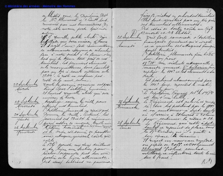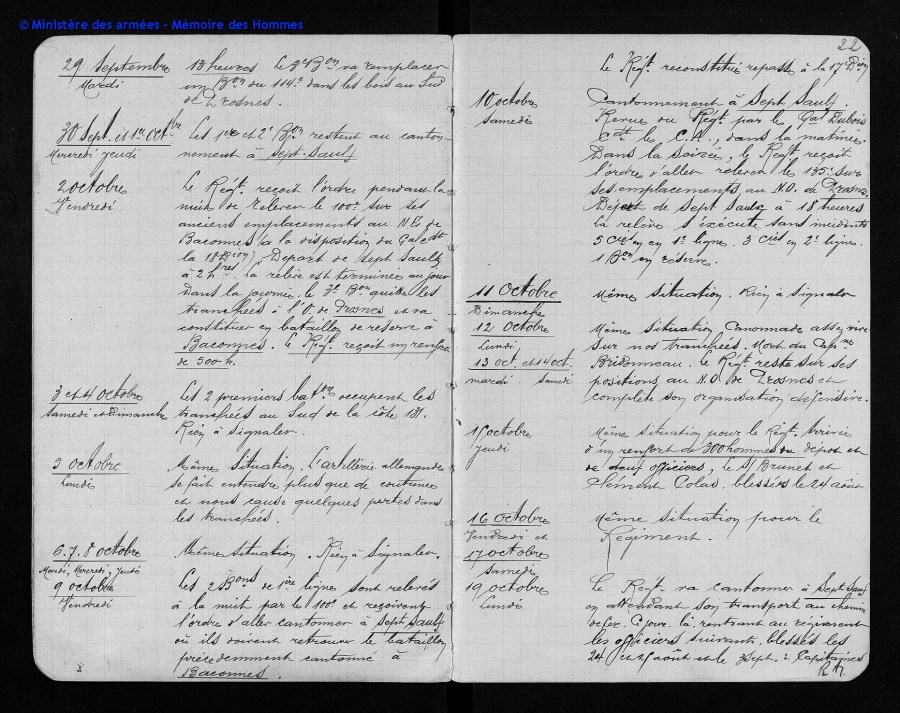 Ce jour-là, à Poëlkapelle, pas loin d’Ypres, en Belgique, le régiment connaît de grosses pertes : 25 tués dont le Sous-lieutenant Portron, 90 blessés dont 3 officiers. La ligne allemande est à 200 mètres de celle française.