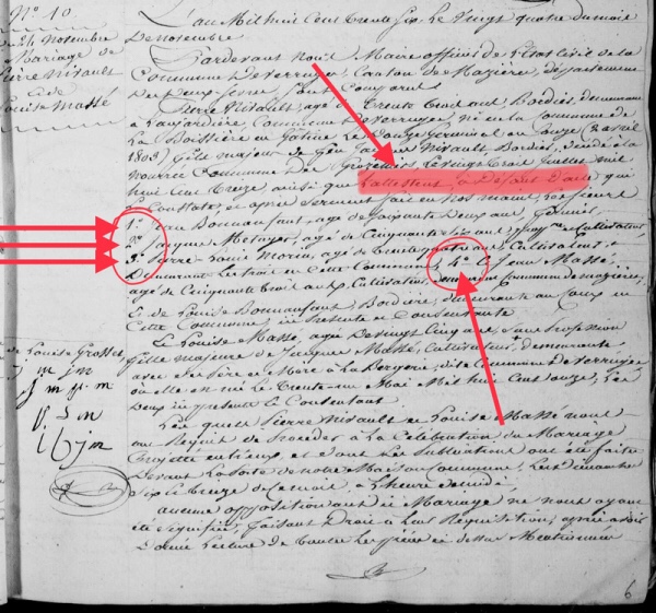 À chaque événement familial, comme les mariages des enfants, il était nécessaire pour l’officier d’État civil de retranscrire, sous serment, les dires de quatre témoins affirmant que Jacques était bien décédé ce 23 juillet 1813 à la Nourrée des Groseillers.