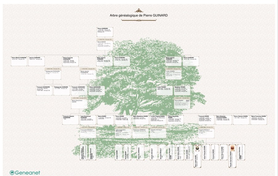 * arbre généalogique de Pierre Guignard ou Guinard, époux de Marie Biron