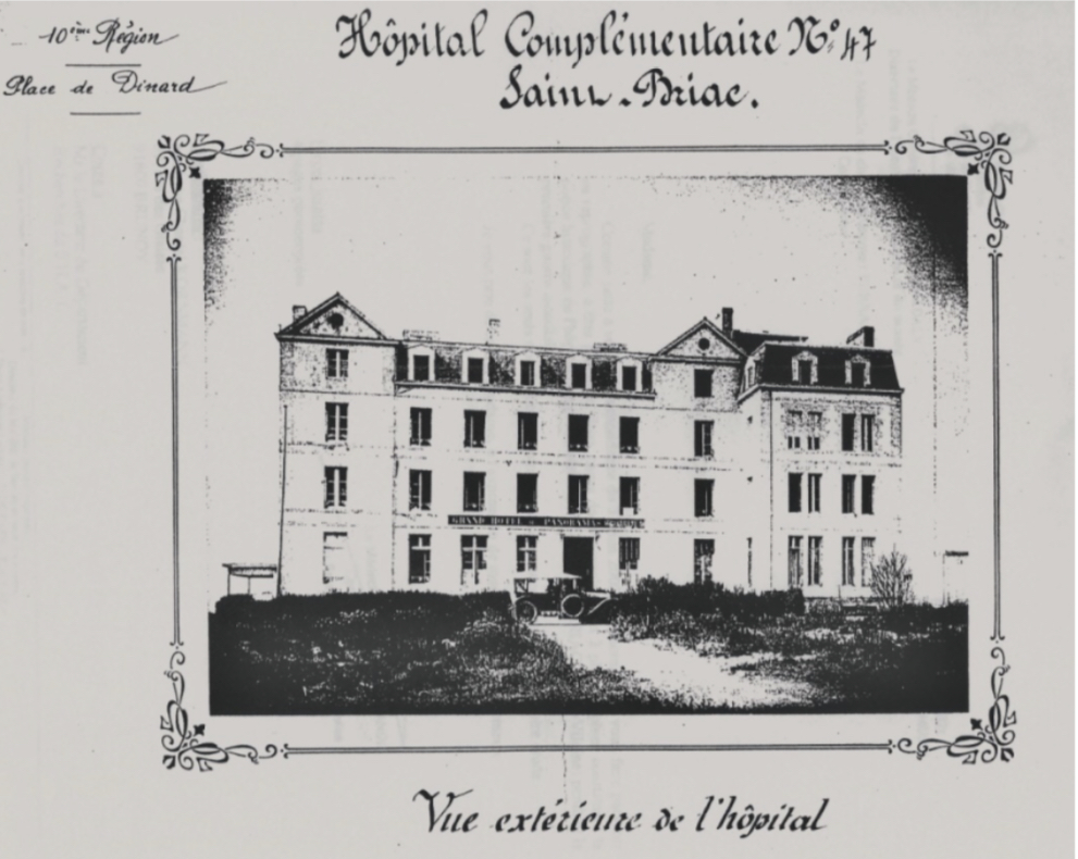 Depuis Bergues, Victorien, est évacué sur Dunkerque et quelques jours plus tard, prend ainsi le bateau pour Cherbourg, ensuite le train pour Dinan et enfin la route, direction Saint-Briac, en Ille-et-Vilaine où il arrive le 4 novembre 1914 pour séjourner à l’Hotel des Panoramas, transformé en hôpital militaire, l’hôpital complémentaire n°47, HC47.